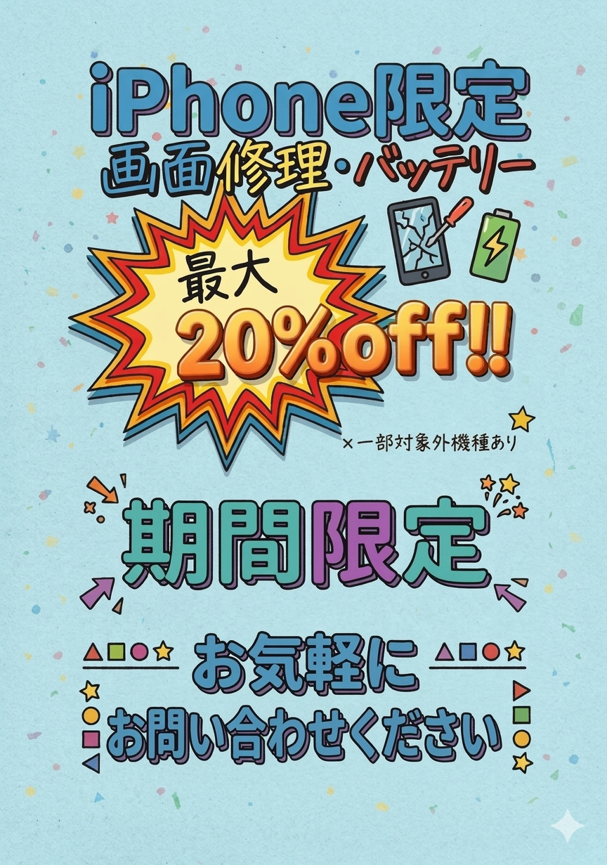 アイフォンの修理で最も多い液晶交換やガラス割れ修理は最短30分〜バッテリー交換は最短15分〜即日お渡し可能。その他のiPhone修理・iPad修理やバッテリー交換・水没復旧・カメラ交換修理・スピーカー交換修理・ホームボタン修理・スリープボタン修理等お任せください。