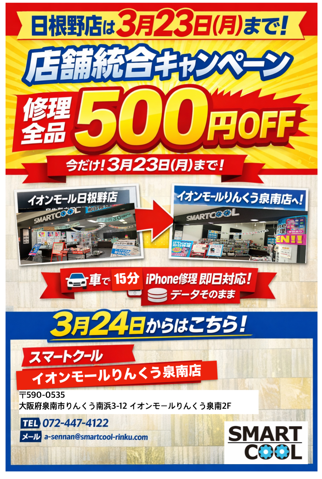 泉南市・泉佐野市でのiPhone修理・iPad修理はスマートクール イオンモールりんくう泉南店・イオンモール日根野店へ